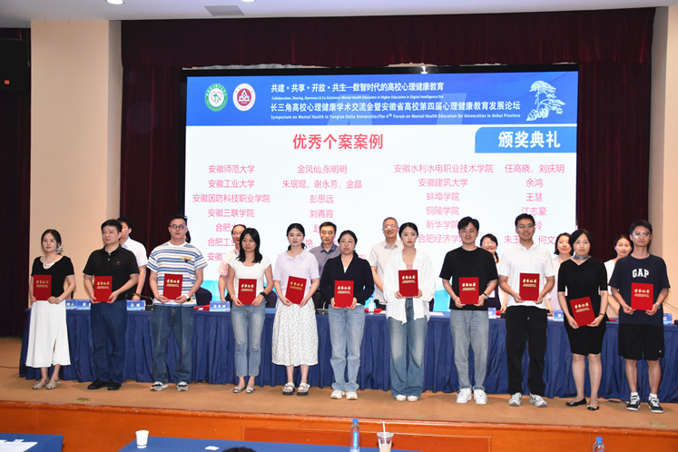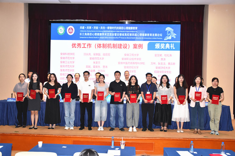 本网讯 近日,长三角高校心理健康学术交流会暨安徽省高校第四届心理健康教育发展论坛在江城芜湖召开。本次会议由安徽省心理卫生协会大学生心理健康教育与咨询专委、安徽工程大学联合主办。会议以“共建·共享·开放·共生——数智时代的高校心理健康教育”为主题,来自长三角地区及北京、贵州、福建、陕西等省市的近400余位专家学者参与本次会议。学校心理健康中心组织专兼职心理健康老师参加本次会议。