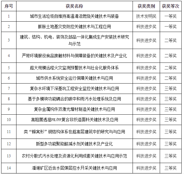 徽建筑大学2021年度安徽省科学技术奖一览表
