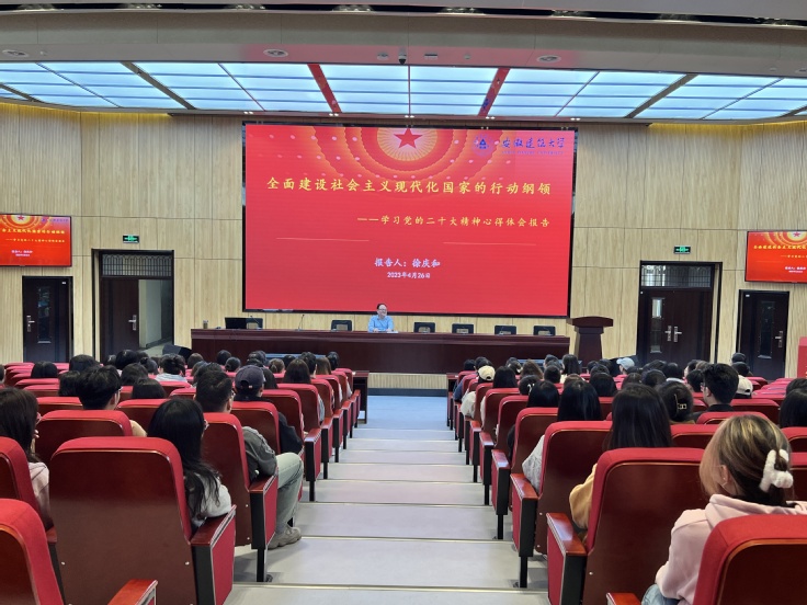 为深入学习贯彻党的二十大精神,进一步提高学院师生对党的二十大精神的理解领会。4月19日下午,学院邀请公共管理学院党委副书记(主持工作)、副教授,安徽省委讲师团专家库青年宣讲名师马晓艳担任主讲,以《学思践悟党的二十大精神以高质量党建引领高等教育高质量发展》为题做宣讲报告,学院党委书记陈国中主持报告会,学院师生党员参加宣讲报告会。