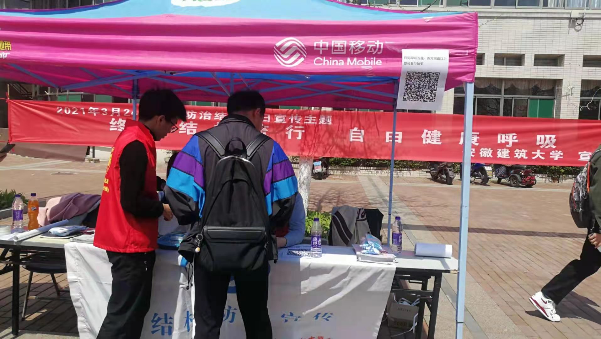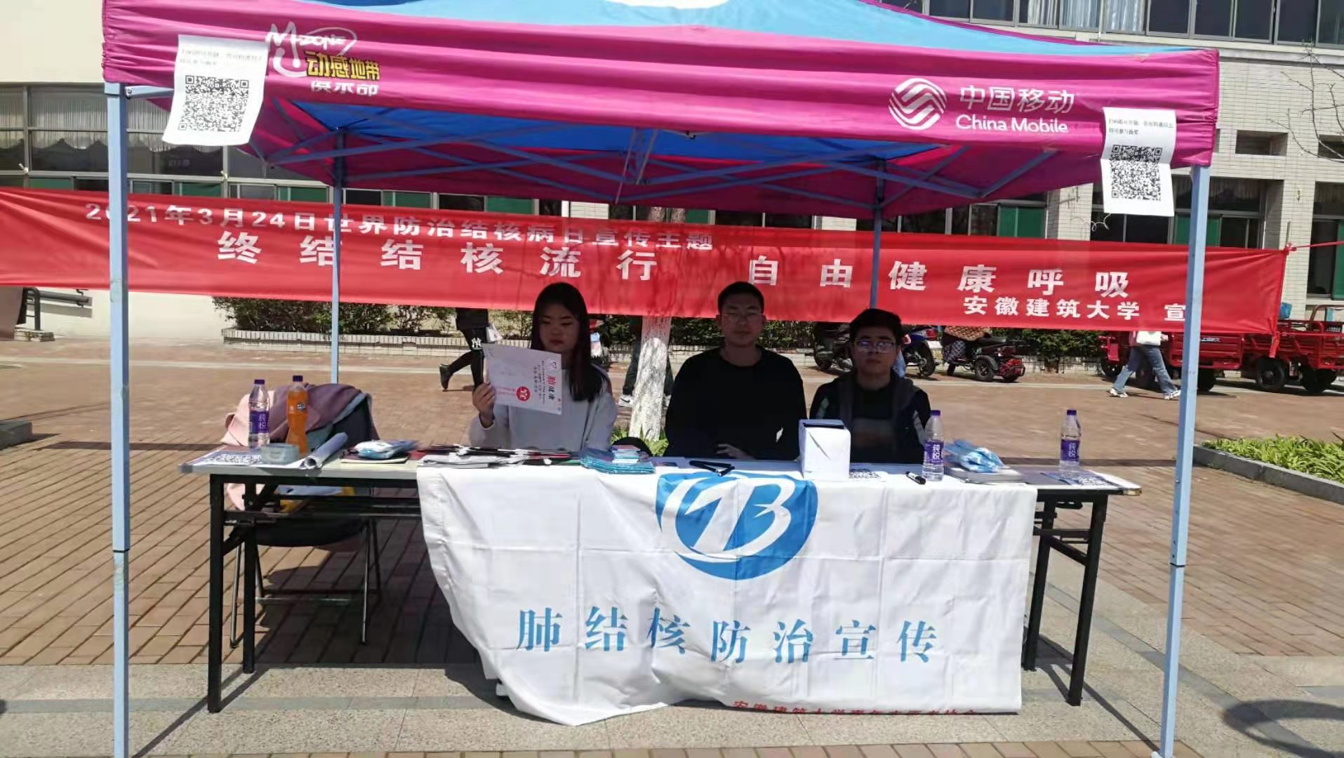 2021年3月24日是第26个“世界防治结核病日”,校医院携手安建大青年志愿者协会开展了终结结核流行,自由健康呼吸”为主题的系列宣传活动。在学校南北区醒目位置悬挂宣传活动主题条幅及发放宣传画册。