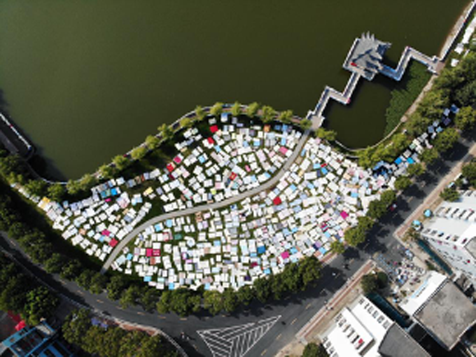 同学们进入校园后,草坪也被五颜六色的被子点缀成了“马赛克草坪”,成为了学校里面一道壮观的风景线。