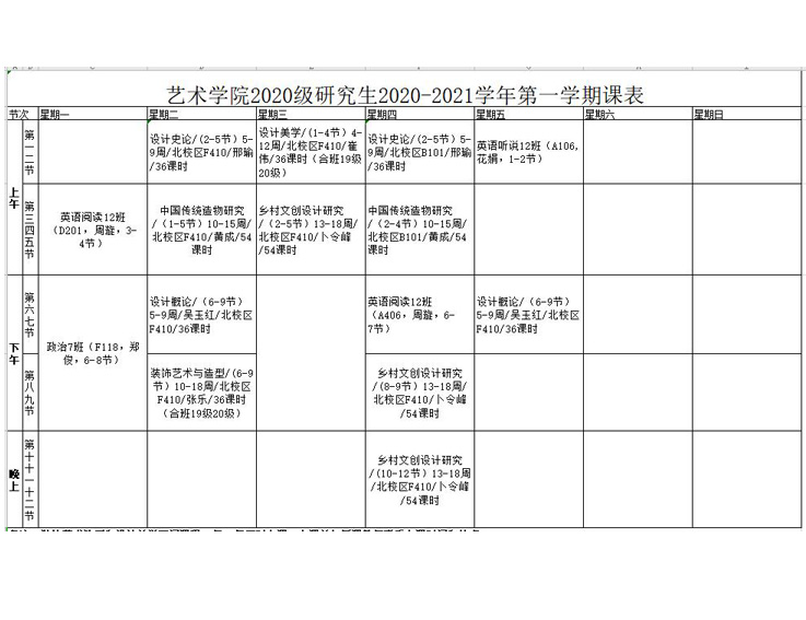 艺术学院2020级研究生2020-2021学年第一学期课表
