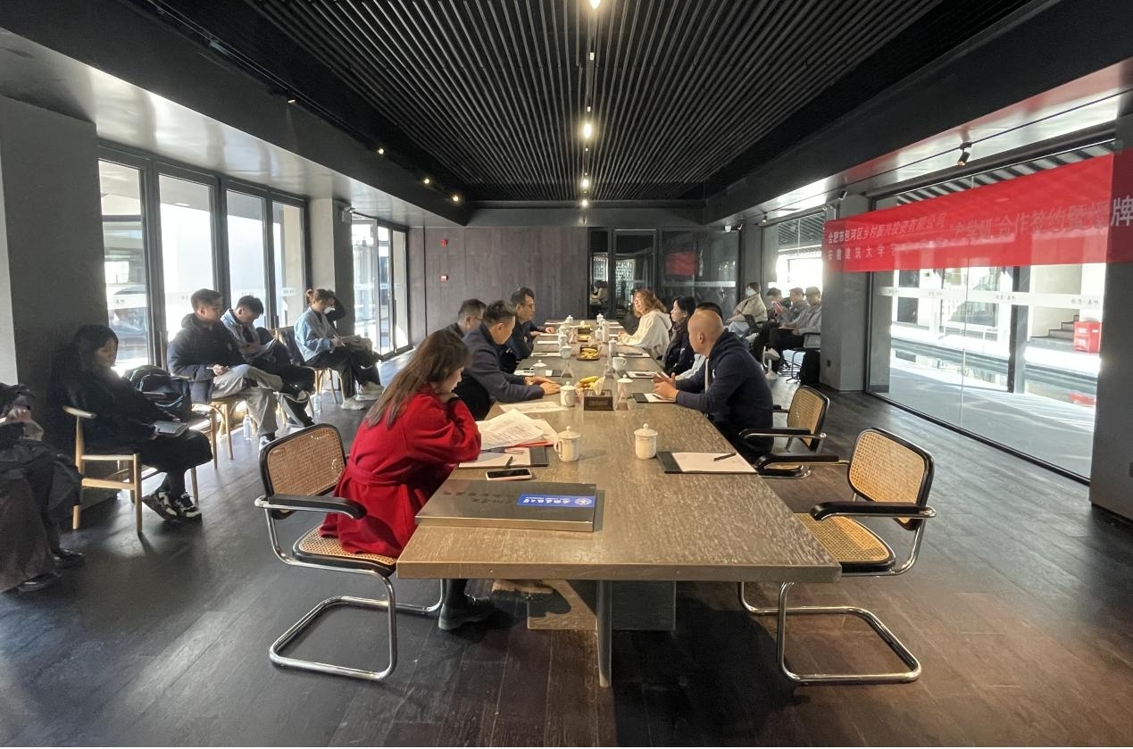 邢瑜介绍了学院在学科建设、人才培养、社会服务等方面取得的丰硕成果,希望双方深入开展校企合作、协同创新、互惠共赢,并表示学院与包河区乡村振兴公司在项目策划、设计创新、环境提升等方面有较大合作空间,以后将共同在环境设计、公共艺术、视觉传达设计等领域实现深层合作,达成共识。