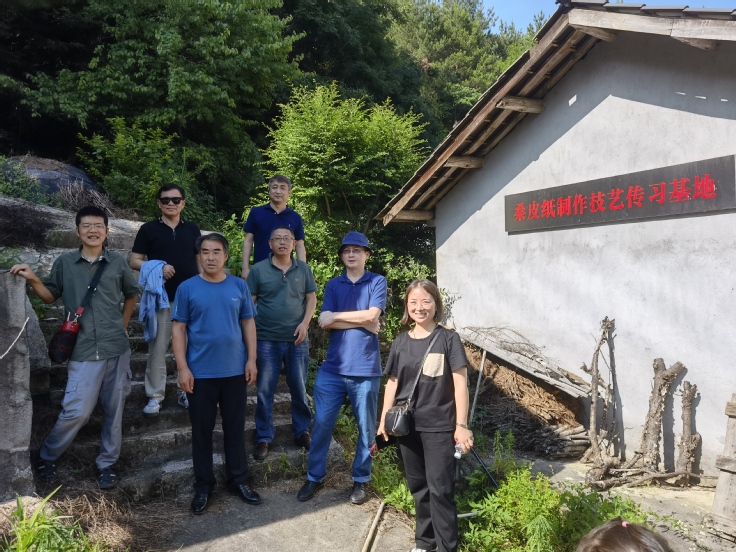 本网讯 7月13日至14日,艺术学院副院长黄朝晖、安徽非物质文化遗产保护中心“桑皮纸制作技艺”传承人梯队培养调研项目负责人田英、学校非物质文化遗产保护传承创新团队负责人陈治军博士与中国民间文艺家协会理事、安徽省民间文艺家协会副主席刘晓明,安徽博物院文保中心主任、安徽省书法家协会副主席季永一行5人前往潜山、岳西调研国家级非遗“桑皮纸制作技艺”项目及其代表性传承人。