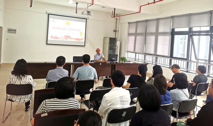 宣讲从“高校纪检监察体制改革情况”、“学校纪检监察工作简介”、“师德师风相关案例展示”三个方面展开,结合党史重大事件、重大活动、重要人物和高校工作的实际案例,引导广大教职工要汲取中国共产党人廉洁为民的精神养分,做到教书和育人相统一、言传和身教相统一、潜心问道和关注社会相统一、学术自由和学术规范相统一,做党和人民满意的“四有”好老师。