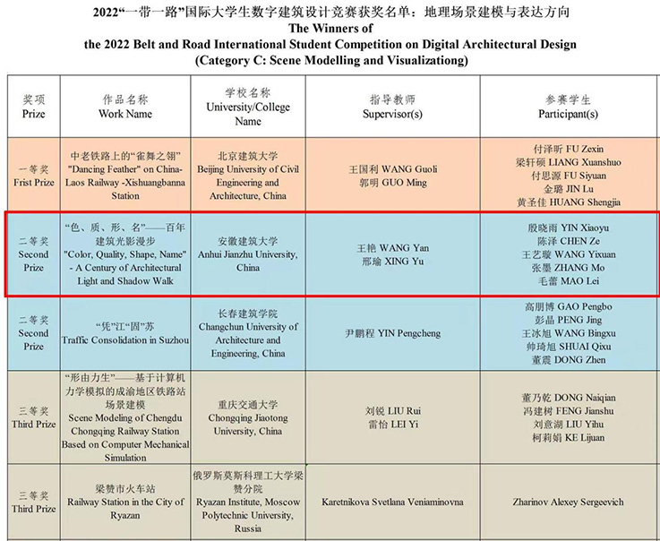2022“一带一路”国际大学生数字建筑设计竞赛由来自11个国家的45所高校、650余名师生参与,竞赛于2022年3月启动,涵盖建筑设计、结构设计、地理场景建模与表达3个方向,经过三年的探索与发展,“一带一路”国际大学生数字建筑设计竞赛的影响力、知名度、专业权威性及参与率与日俱增,已成为国际大学生之间的学术和文化交流盛会。