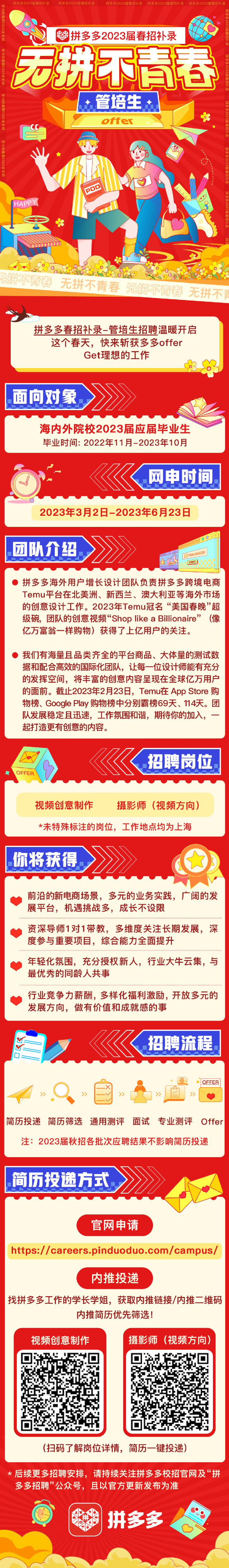 【2023届招聘信息】拼多多海外用户增长设计团队