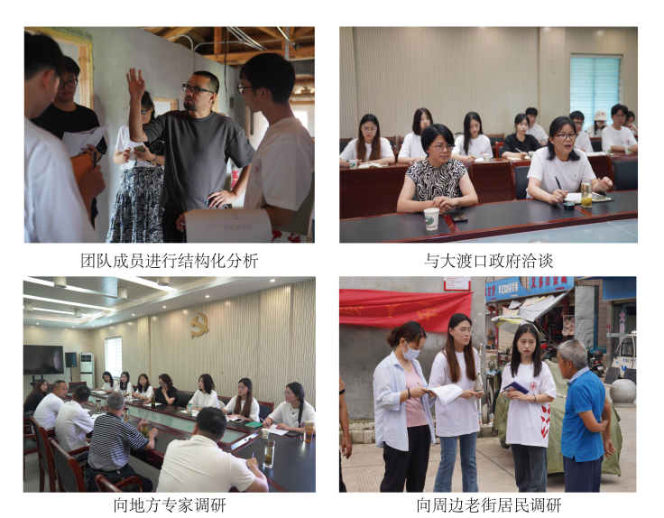 实践团队于20235月至7月期间多次赴池州市东至县大渡口镇红楼开展前期调研,对当地风土人情、历史文化、建筑风格等进行全面深入了解,为后续实践设计打下坚实基础,并于2023年暑期正式开展“渡口寻红”三下乡主题实践设计活动,走访调研安徽省池州市东至县大渡口镇、南溪古镇、东流古镇等地。