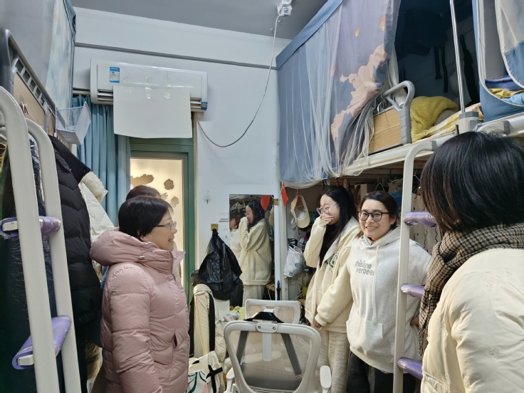 本网讯 本周六、周日将迎来2024年硕士研究生招生考试,艺术学院领导班子、毕业班辅导员走进学生宿舍,看望正在备战考研的学生,为他们送上鼓励与祝福。