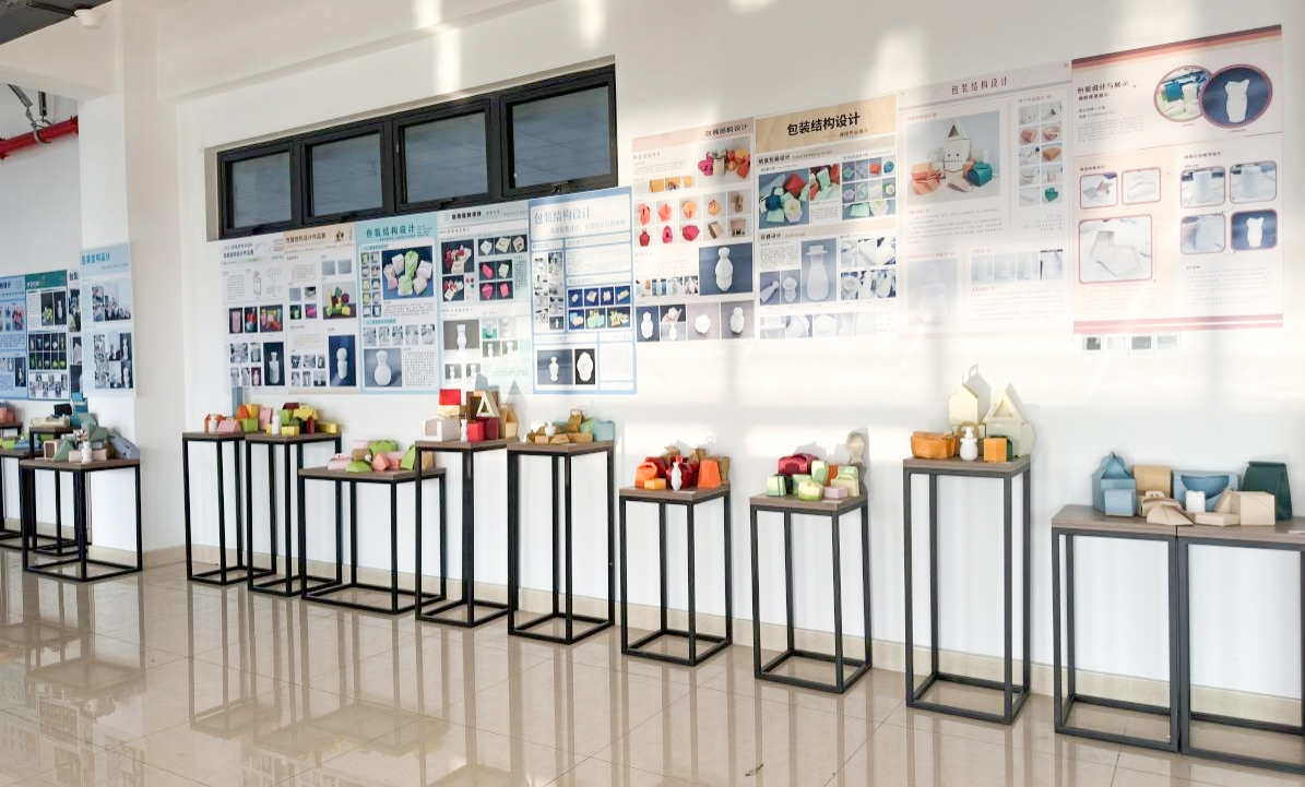 本网讯  近日,艺术学院在徽韵楼艺术馆二楼展厅成功举办视觉传达设计专业课程作业成果展,旨在展示学生在《包装结构设计》《综合材料与装饰设计》课程中的优秀作品,展现学院扎实有力推进实践育人的成效。展览分为两个部分,由两个年级的学生创作完成。