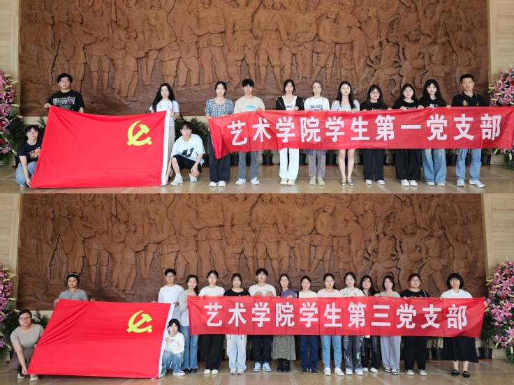 在悼念广场烈士纪念碑前,艺术学院新发展学生党员及转正学生党员,右手握拳,高举过肩,目光坚定,向着鲜红的党旗宣读誓词。他们用真诚而有力的声音,发出了为共产主义奋斗终身的誓言,立志做有理想、敢担当、能吃苦、肯奋斗的新时代好青年。