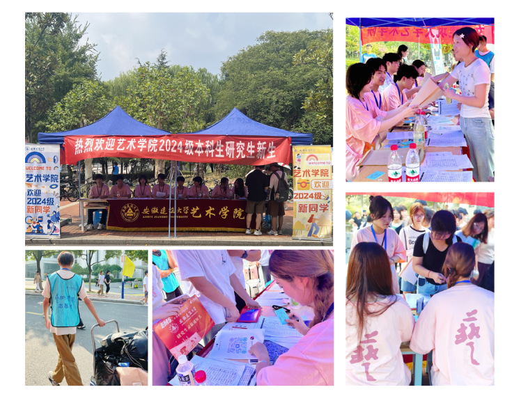 早上6点,尚是晨光熹微之时,迎新现场早已是一片如火如荼的热闹景象。在这里,既有热烈欢快的迎新氛围,也有着井然规范的工作秩序。为保障新生们能够顺利报到并快速融入新的学习与生活环境,学院组织了志愿者团队引导新生办理报到手续,协助搬运行李、提供校园导览服务,从建树建艺到徽风徽韵,从徽文徽华到易海兰亭,让新生们对即将开始的学习环境有了更为直观和深入的了解。
