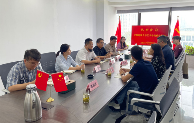 安徽大地乡居文旅运营有限公司执行董事沈慎、总经理祖明明及设计总监陈宁热情接待了学院一行。安徽大地乡居文旅运营有限公司是中国领先的乡村文旅振兴服务机构,拥有着丰富的乡村文旅运营实践经验。座谈会上,邢瑜介绍了艺术学院的发展现状及专业设置情况,陈晓天介绍了学院毕业生生源情况及就业方向,卜令峰博士就如何将运营项目与研究生培养相结合与公司进行了深入探讨。沈慎表示,公司希望可以与学院在产学研合作、学生实习、就业等方面进一步深化合作,实现校企双方互利共赢的良好局面。