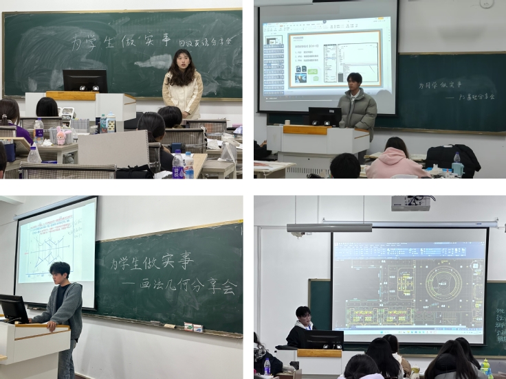 学院深入了解同学们的学业需求,组织高年级品学兼优的同学分享画法几何、英语、应用软件等课程的学习心得与方法,分享学习资源,发挥朋辈力量助力同学成长。在互动环节,同学们纷纷就专业学习中的疑惑向学长学姐们提问,并得到满意的回复。