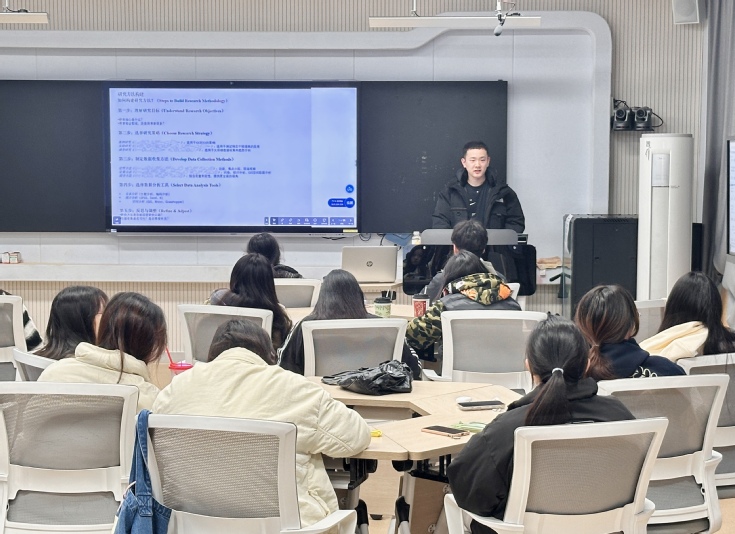 本网讯  为深化环境设计(中外合作)项目的国际化人才培养体系建设,依托优秀毕业生开展朋辈示范教育,助力在读学生科学规划留学路径,312日下午,艺术学院举办了主题为“探索与选择—与UCL学长对话”的留学经验分享会。本次活动邀请了2016级环境设计(中外合作)项目毕业生陈乾元校友进行经验分享,中外合作办学项目协调员雷媛老师主持活动,40多名学生参加分享会。