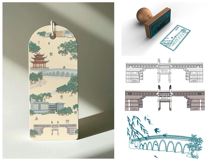 “匠心筑徽韵”文创设计活动,从徽弘门、图书馆等校园标志建筑中提炼出建筑元素并转化为视觉形象符号。设计团队巧妙融合云纹、回纹等传统纹饰,通过模块化分层结构打造校门景观文创灯,实现功能性照明与文化符号的深度融合。剪纸创作则聚焦易海兰亭,以非遗镌刻青春记忆,结合现代校园元素展现青春风采。传统技法与现代元素的碰撞,既彰显文化传承的源远流长,又展现创新发展的时代活力。