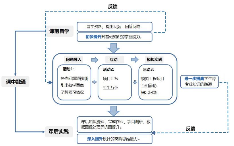 基于学校大土建学科专业齐全优势,围绕专业知识、能力、素质教育,培养学生综合性高阶设计思维,坚持“新文科”建设为指导,以学生为中心。以科研结果为导向,固守本专业基本理论,跨专业知识横向融通,交叉融合重构教学内容,从而引入“学科前沿”和“工程项目实际”案例,进而增加课程内容的实践性设计;教学资源的多元立体化构筑,以本专业知识纵向深入为视角,通过线上线下结合、实践项目实施与课堂仿真实验相结合,提高学生对内容的掌握能力;三是合理运用现代技术手段,以进行跨专业知识横向融通为视角,组建“学习综合圈”,带动深度思考;修“自学、融通、实践”的学习方法,提升综合性高阶思维能力;四是设置过程性评价和终结性评价结合评价体系,注重评价的维度、深度和广度,提高学习动力和热情;五是以社会热点问题深挖课程思政元素,不断更新思政内容,坚持课堂教学、平台实践及项目实践“三课堂”联动育人,激发学习热情。