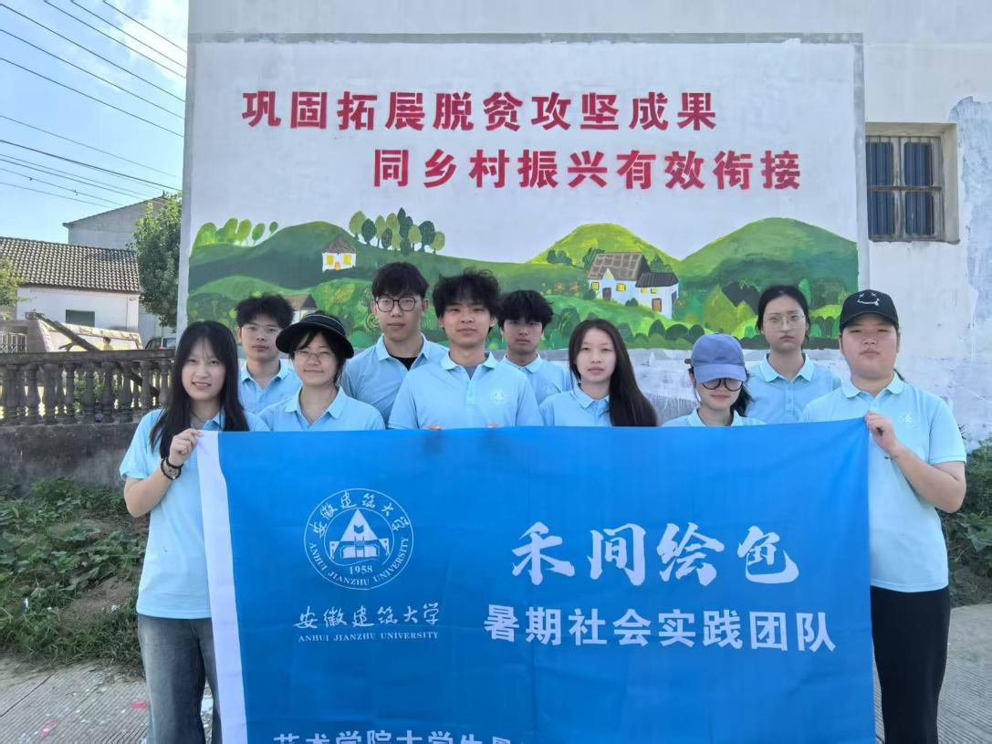 本网讯 7月7日至8日,艺术学院“禾间绘色”暑期三下乡实践团队的10名学生在艺术学院专职辅导员施林坡、美术教研室教师石莉莉的带领下,踩着发烫的乡间路,把艺术课堂搬进了我校对口扶贫的六安市舒城县汤池村的寻常巷陌。这场以“用画笔讲好乡村故事”为初心的三下乡之旅,让乡村振兴与艺术在勾勒间撞出别样火花。