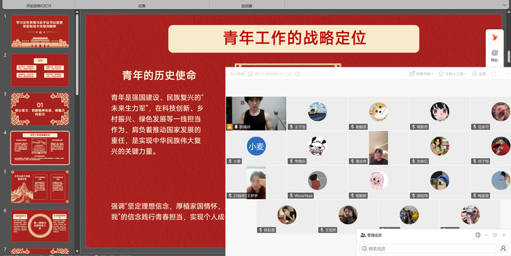 本网讯 为深入学习宣传贯彻习近平总书记致全国青联十四届全委会和全国学联二十八大的重要贺信及党中央致词精神,艺术学院团委、学生会于730日开展线上专题学习,着力引领青年学生深刻把握精神实质与核心要义。
