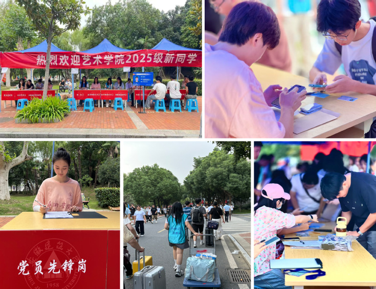 艺术学院高度重视迎新工作,提前做好充分安排。迎新现场特别设计以“WE ❤ ART”主题的互动展板,定制设计卡通形象磁吸贴,按专业班级学生人数精准分配,送给新生代表自身专业的磁吸贴作为入学礼物。学院领导与辅导员迎新现场细致了解新生和家长的入学体验,鼓励大家尽快适应环境、珍惜大学时光,勇于追寻艺术梦想。温馨的交流有效缓解了新生的忐忑情绪,现场气氛热烈,融洽欢快。报到区域专设党员先锋岗志愿服务点,为新生提供高效引导,极大缩短手续办理时间,充分发挥了党员的模范带头作用和志愿者精神。