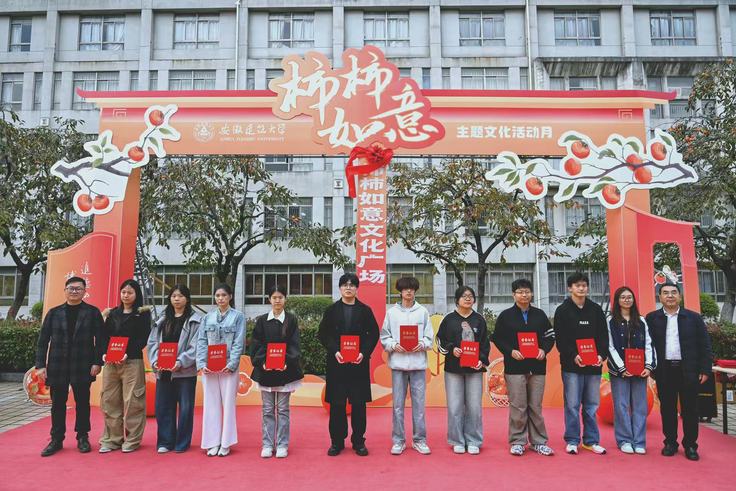 本次比赛由校团委、艺术学院联合主办,艺术学院团委承办,启动以来得到全校师生的热烈关注与积极响应。同学们以校园秋日里的柿子为灵感,深度挖掘其天然美感与“柿柿如意”的吉祥文化寓意,创作出涵盖手工艺品、家居用品、包装设计等多个领域的作品。这些作品构思奇巧、特色鲜明,充分彰显了我校学生的创新活力与艺术才华。颁奖典礼上,校领导及嘉宾为获奖同学颁发荣誉证书,充分肯定他们的创意成果。