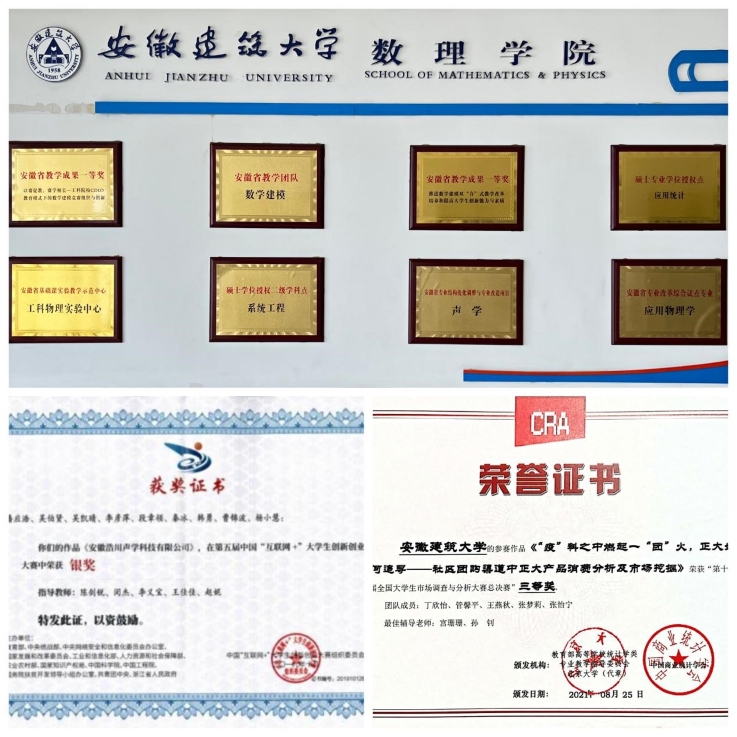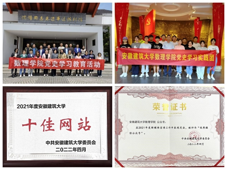 学院党委严格落实党建工作主体责任,统筹推进党的政治、思想、组织、作风、纪律建设,加强党员干部队伍管理,从严从实推动落地见效。在坚持社会主义办学方向、推进科学发展方面,党建引领发展作用彰显,教学、科研、人才培养等方面成果丰硕。近两年,学院申报获批国家基金项目6项,安徽省自然科学基金项目6项,其中杰青项目1项,安徽省质量工程项目17项,发表高质量学术论文89篇;建筑声环境省教育厅重点实验室、先进电子材料与器件校级重点实验室平台建设继续加强;成功申报《数据计算及应用》本科专业;注重宣传交流和社会服务工作,学院每年作为学科组单位高质量完成高考数学学科网评工作,协办全国声学年会;积极推动学生科技竞赛和创新创业项目申报,获省级以上奖项140余项,其中“互联网+”创新创业大赛国家级银奖2项,省级金奖1项、铜奖1项;大学生数学建模竞赛国家级一等奖4项,二等奖6项;大学生市场调查大赛国家级二等奖1项,省级二等奖11项。