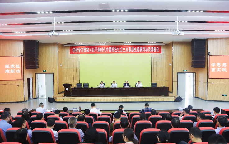 本网讯 4月18日上午,学校学习贯彻习近平新时代中国特色社会主义思想主题教育动员部署会在南校区实验综合楼二楼报告厅召开。校党委书记孙道胜主持会议并讲话,省委第十巡回指导组组长丁忠明出席会议并讲话。校党委常委、副校长蔡新立传达习近平总书记重要讲话精神和中央主题教育工作会议精神、省委主题教育动员大会精神。省委第十巡回指导组副组长夏智明、巡回指导组成员,校领导、全校副处以上干部、党支部书记,教授党员代表、教职工党员代表和学生党员代表参加会议。