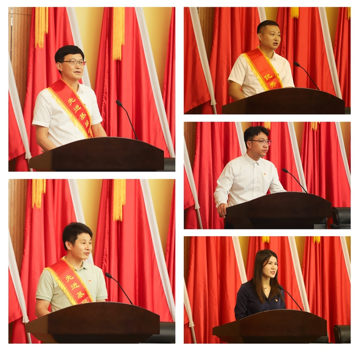 先进基层党委(党总支)代表,经济与管理学院党委书记陈国中;先进教工党支部代表,土木工程学院岩土工程系教师党支部书记刘洋;先进学生党支部代表,电子与信息工程学院学生第五党支部书记曾涛;优秀共产党员代表,材料与化学工程学院新能源材料工程系副研究员金震;优秀党务工作者代表,公共管理学院专职辅导员、兼职组织员周娅子分别发言。